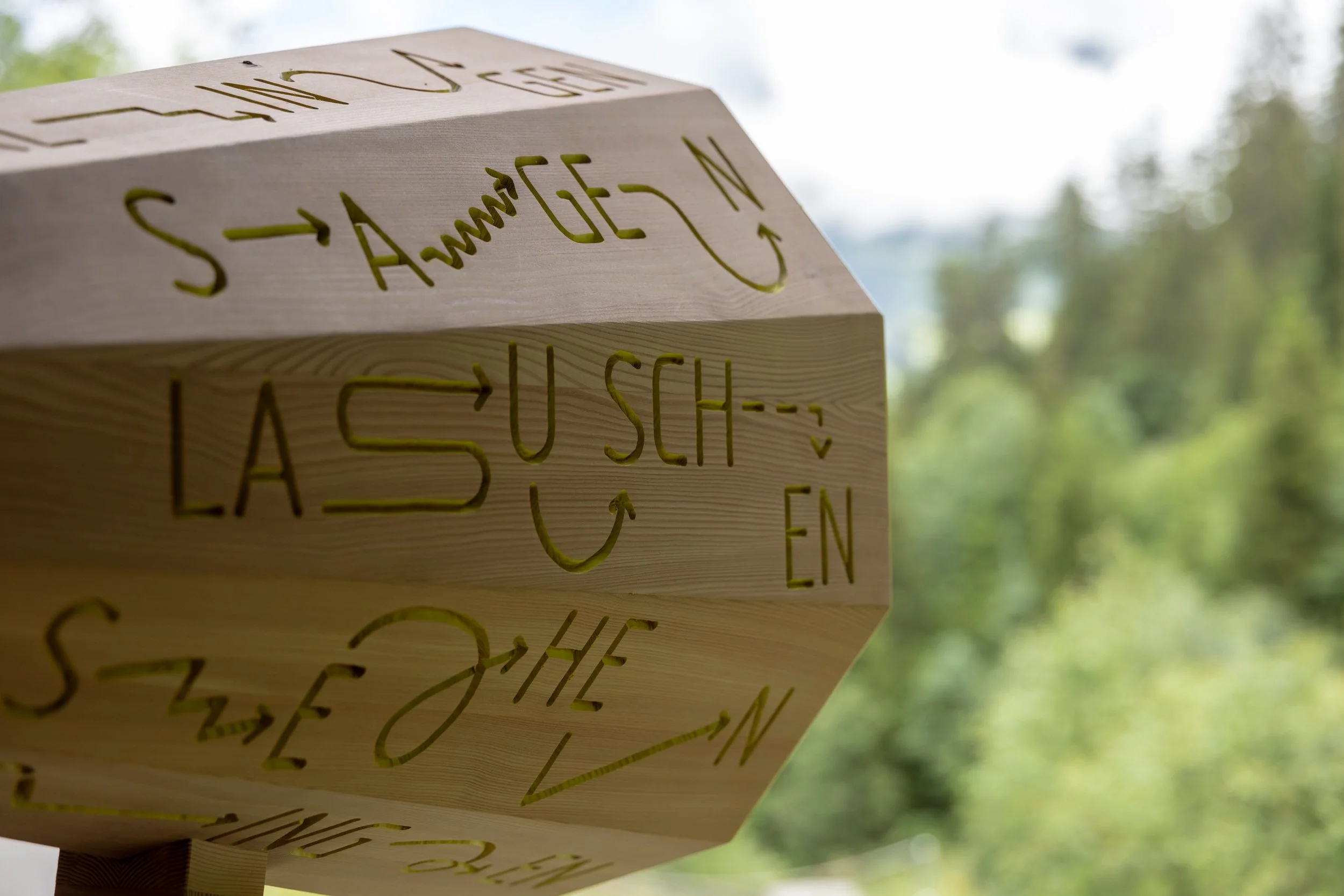 Im Rahmen des Projektes [tʃlˈfɪk] Klingende Kulturgeschichte im Schanfigg gestaltetet Studio Capisci die Klangstation Stille Säge in Tschiertschen. Enstanden ist ein gravierter Trichter aus Lärchenholz mit Farbdetails inspiriert von der Leuchtflechte vor Ort. Mit dem Trichter kann man an hier die scheinbare Stille mit allen Sinnen erforschen.
